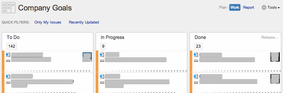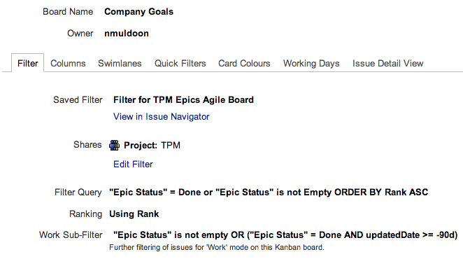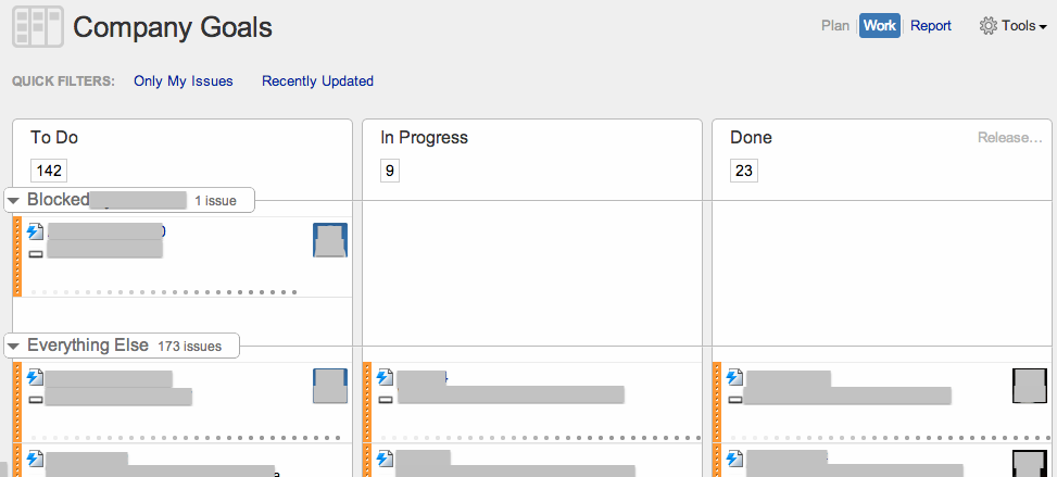 UPDATE: I've revised my approach and added new details. Read this post first then continue with part 2.I had been looking for a way to visualise epics across a number of teams and programs in JIRA and GreenHopper. I want to highlight those epics which are blocked. What I have settled on is a combination of JIRA, GreenHopper and an add-on for JIRA called JQL Tricks.